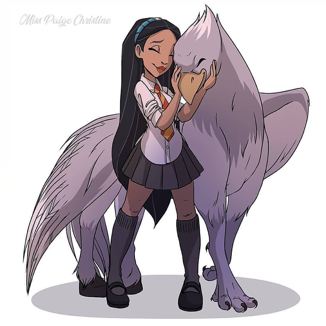 Покахонтас (Гриффиндор) и гиппогриф