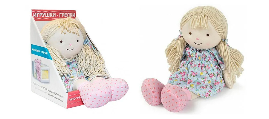 А вот ещё один тёплый вариант — кукла-грелка Оливия >>>. Эта замечательная куколка с успокаивающим ароматом французской лаванды будет согревать малышку перед сном. Для того, чтобы Оливия дарила девочке своё тепло несколько часов, её нужно нагреть несколько минут в микроволновке. Кроме того, кукла может использоваться в качестве компресса, если её предварительно охладить.