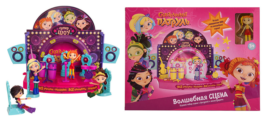 Игровой набор «Звезда сцены» >>> поможет раскрыть потенциал вашей малышки! В набор входит: сцена с декорациями, фигурка одной из героинь в сценическом костюме, 4 музыкальных инструмента, микрофон на стойке, микрофон с подключением и батарейки. Рядом с волшебницами можно ничего не бояться и смело исполнять любую песню.