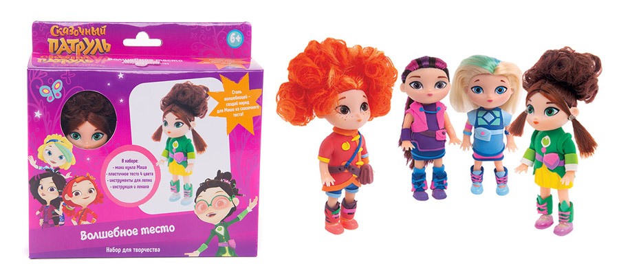 Любительнице придумывать наряды самостоятельно понравится «Тесто для лепки» >>>, в каждом наборе есть: кукла-героиня из мультсериала «Сказочный патруль», пластичное тесто 4-х цветов, специальные инструменты и лекала. Ручки и ножки у самой куклы подвижные. На кукле тесто после его вырезания застывает, превращаясь в стильный наряд.