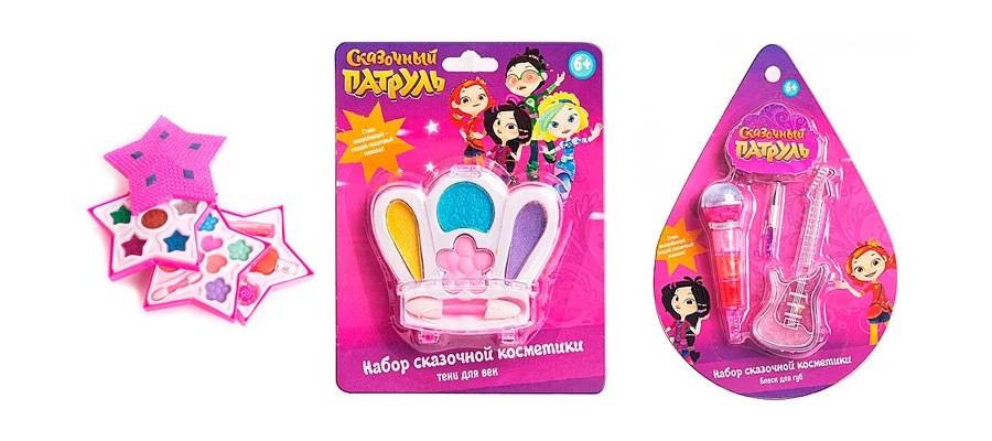 Наборы декоративной косметики «Сказочный патруль» >>> помогут сделать любой день ярче. В продаже есть полный набор или отдельный выбор теней для век и блесков для губ. Сколько радости подарить — решать только вам. Этой гипоаллергенной косметикой можно пользоваться уже в 6 лет.
