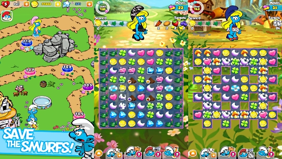Чтобы разрушить чары злобного Гаргамеля, Смурфетте предстоит преодолеть длинный и непростой путь, состоящий из более чем ста уровней головоломок из серии три-в-ряд. Ребятам предстоит выстраивать цепочки из трех и более одинаковых предметов на игровом поле, чтобы они пропали и тем самым принесли необходимые очки.