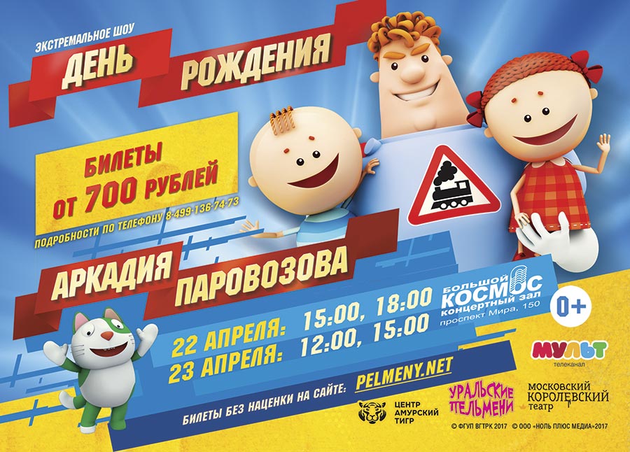 Аркадий Паровозов ждет всех в гости 22 и 23 апреля в БКЗ «Космос» (пр-т Мира, 150). Продлится праздник 60 минут. Билеты можно приобрести на официальном сайте «Уральских пельменей».