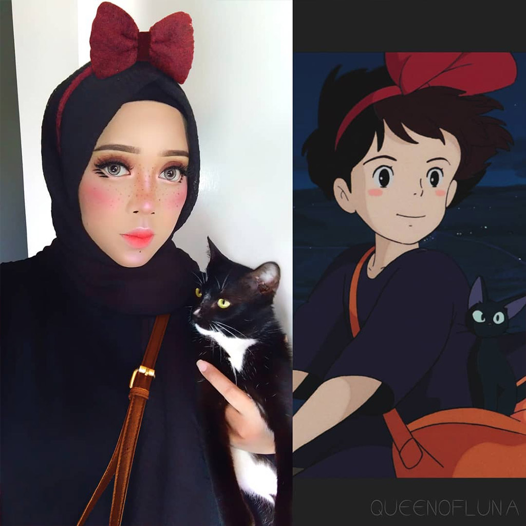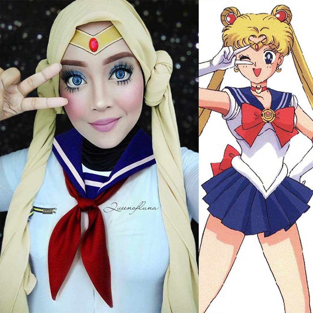 Косплеерша с ником [данные удалены] придумывает удивительные образы мультгероев при помощи… хиджаба! Религия не мешает девушке творить яркие и узнаваемые косплеи персонажей мультфильмов. Смотрите сами, как при помощи хиджаба и хорошего макияжа можно сделать настоящий косплей: