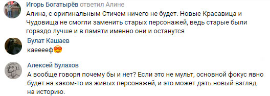 Конечно, на эту новость не могли не отреагировать фанаты. В основном — отрицательно. Disney обвиняют в самоповторах и нежелании придумывать что-то новое. А фанаты мультфильма заранее уверены, что их любимый мультфильм испортят.