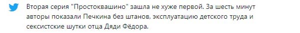 Особенно забавно про раздевающегося Печкина — видимо, комментаторы не видели львиной доли современных мультиков, где это в порядке вещей:
