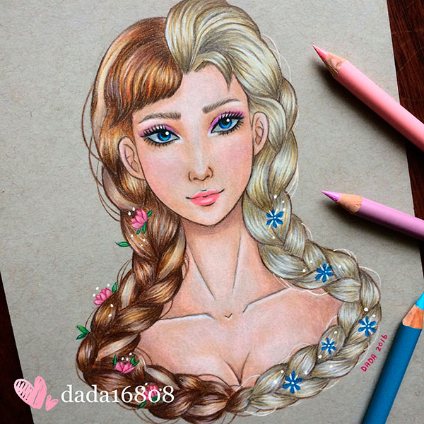 Художница, известная под ником dada16808, по ее собственному признанию, очень любит рисовать, обожает Хаяо Миядзаки, аниме и в полном восторге от диснеевских мультфильмов. Именно последним девушка посвятила серию карандашных рисунков, на которых она совместила двух персонажей из одного мультика.