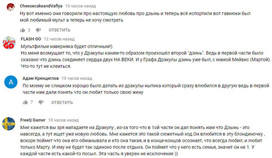 Фанаты мультфильма пришли в замешательство от трейлера. Ведь ДЗЫНЬ (то есть настоящая любовь) бывает только раз в жизни, а тут Дракула снова влюбляется.