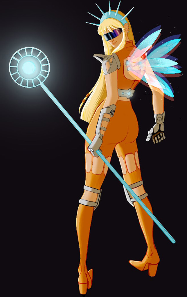Костюм Лейлы демонстрирует множество креплений, которые делают силуэт феи ещё изящнее. Обратите внимание на её позвоночник — вот и он, тот самый киберпанк.