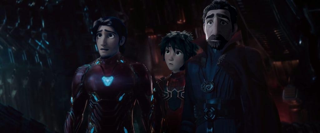 Флин Райдер («Рапунцель») — Тони Старк, Хиро Хамада («Город героев») — Питер Паркер, король Фредерик («Рапунцель») — Доктор Стрэндж. «Мстители: Война бесконечности».
