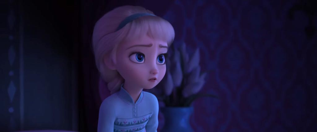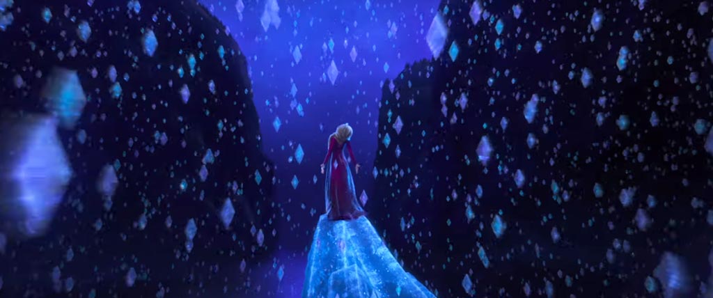 Однако, создатели уверили, что Анна чуть позднее проверяет сестру и они засыпают, вместе наблюдая за северным сиянием. Чуть позже Эльза просыпается от этого голоса снова. Далее следует сцена, увиденная нами в трейлере — девушка выбегает на улицу и при помощи заклинания создает сотни ледяных кристаллов, парящих в небе Эренделла.