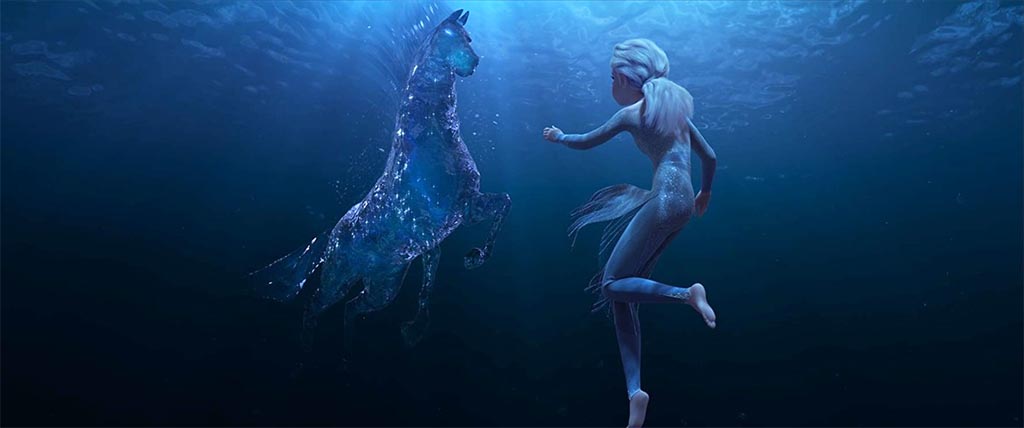 Эльза против воды, Эльза в воде. Да, второй сценой стала та, где Эльза старается покорить стихию и буквально проморозить себе путь вперёд. Судя по всему, встреча девушки и водного духа в виде коня не закончится обычными переглядками. Они устроят между собой целое сражение.