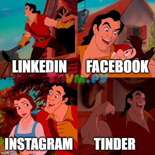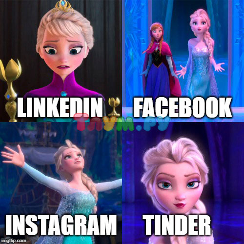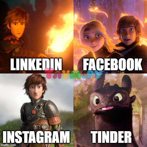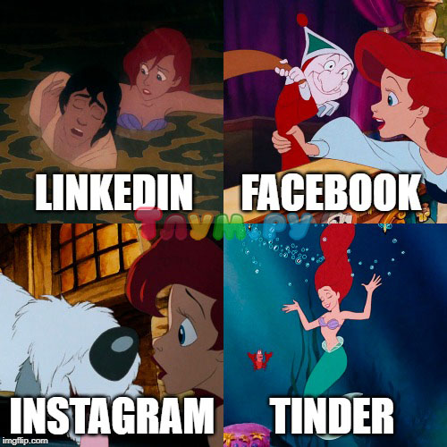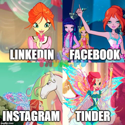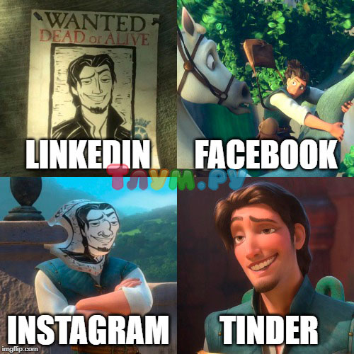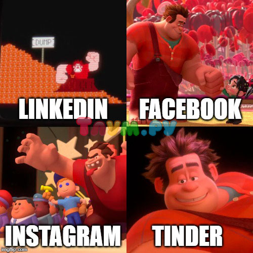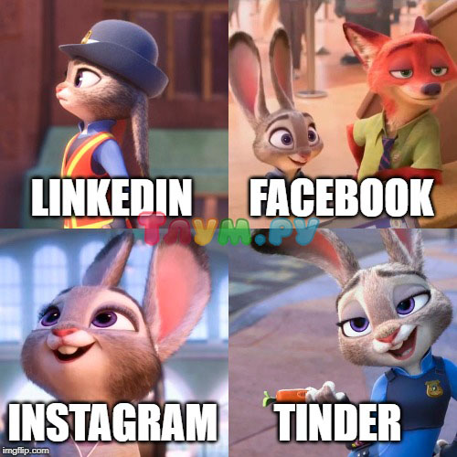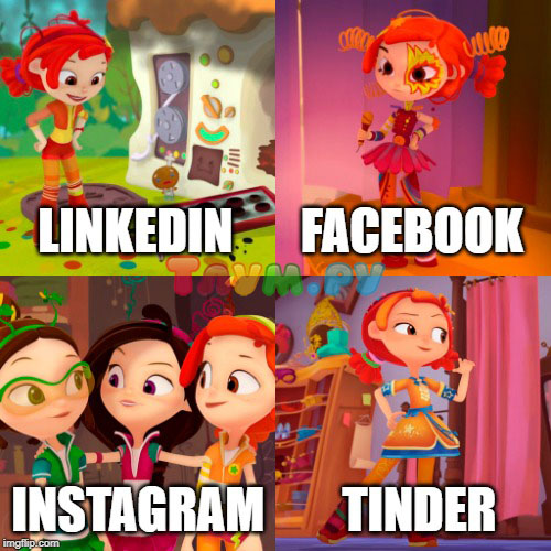 Герои мультфильмов в флешмобе: Linkedin, Facebook, Instagram, Tinder