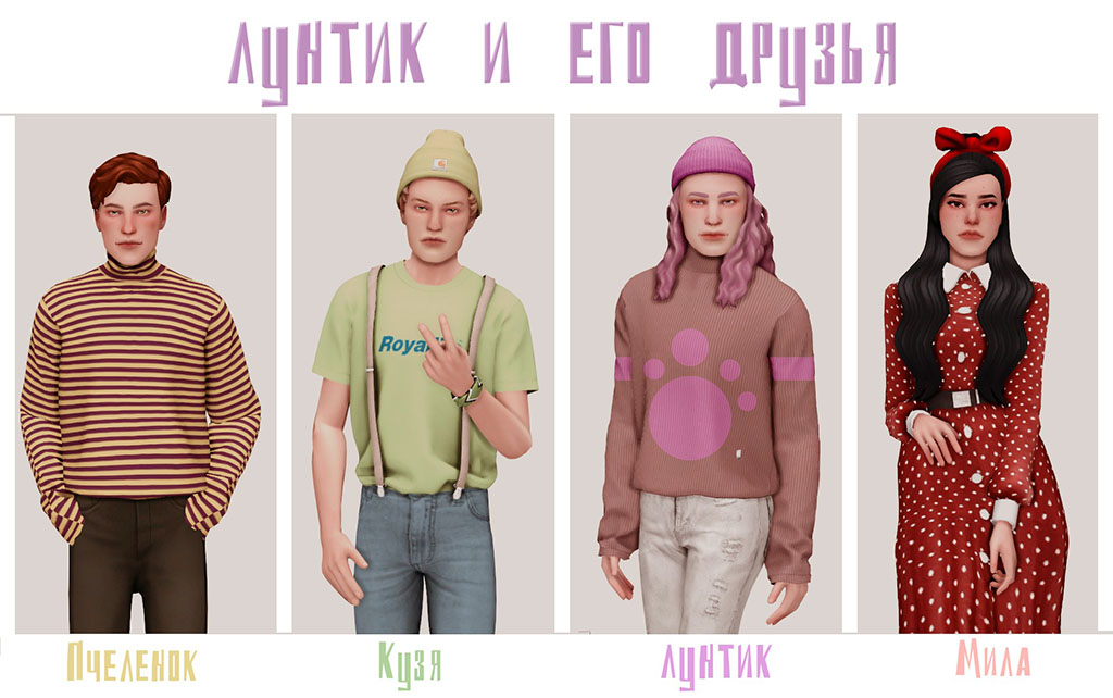 А что скажете насчёт The Sims 4? Это ведь тоже творчество — посмотрите, как lemon ascorbic создала героев мульсериала в игре. Пчелёнок, Кузя, Лунтик и Мила: