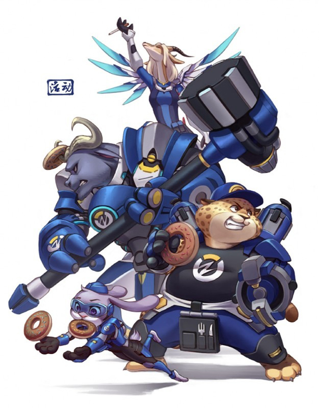 Иногда художники создают такие невероятные и необычные кроссоверы, что невольно думаешь — как им вообще могло прийти в голову что-то подобное? Вот вы не ожидали — а китайский художник изобразил персонажей мультфильма «Зверополис» в виде участников видеоигры «Overwatch», рассказывающей о группе героев, спасающей человечество от самых разных злодеев. Смотрите сами: