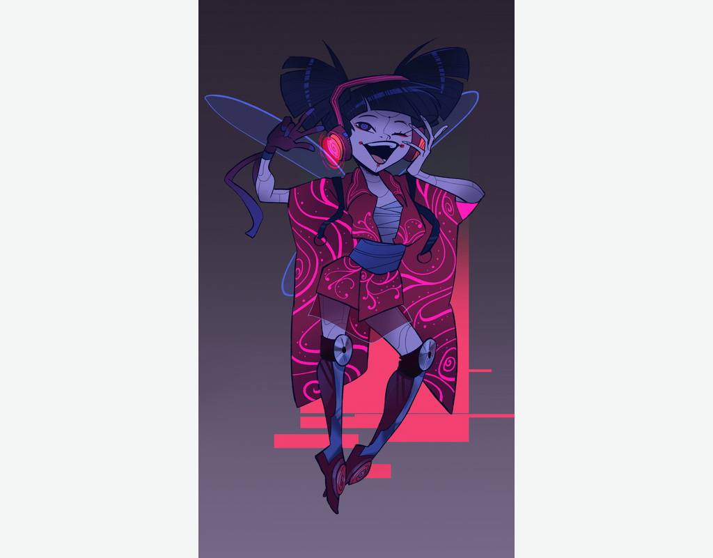 Текна выглядит как самурай из будущего — японские мотивы смешиваются с киберпанком