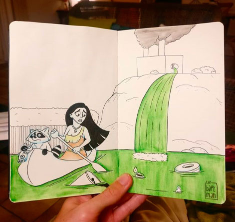 Художник-самоучка из Франции Батист Драусин очень озабочен вопросом сохранения окружающей среды. И для того, чтобы привлечь внимание к этой проблеме, он решил сделать цикл тематических рисунков. Каждый день в течение месяца он изображал, как герои поп-культуры сталкиваются с той или иной экологической проблемой.