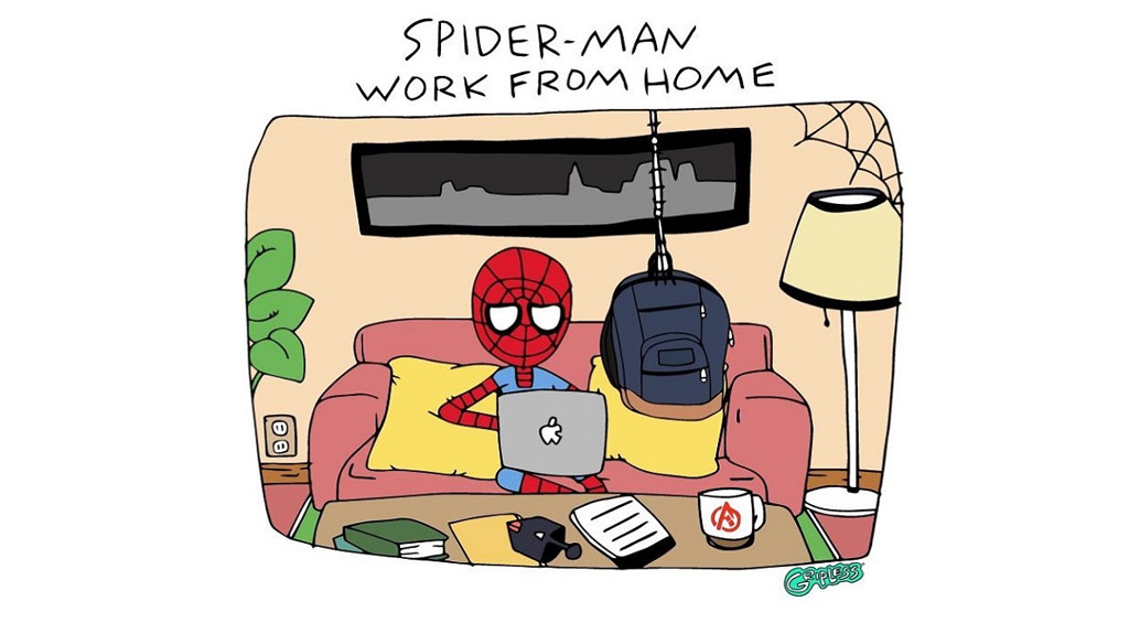 И даже Человек-паук работает из дома, наверное, за компьютером он устраивает социальную справедливость в Сети!