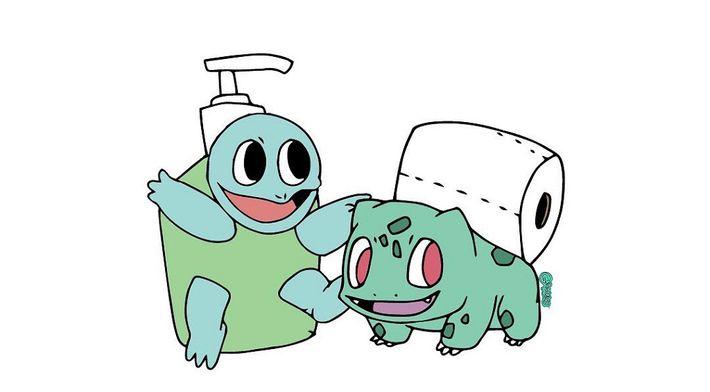 Сквиртл и Бульбазавр уже не просто покемоны, а важные помощники. Кто с санитайзером, а кто с туалетной бумагой