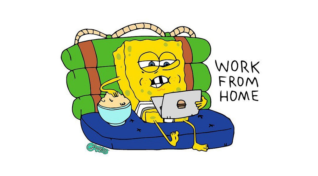 Губка Боб работает из дома, вот только как, если обычно он трудится в общепите?
