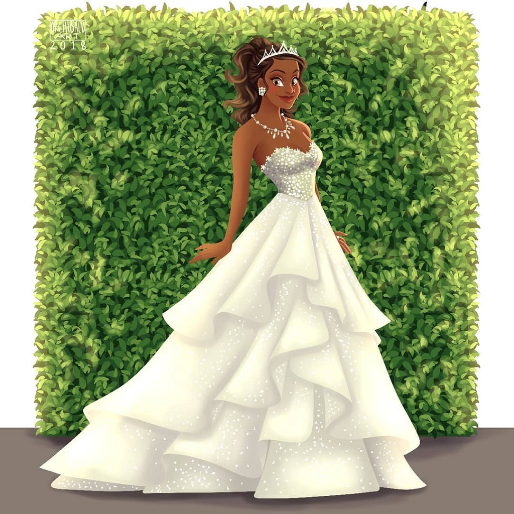 Фанатам принцесс Disney нет равных — ведь они могут придумать для своих фавориток любую жизнь. Начиная с путешествий по далёкому космосу и заканчивая подготовкой к настоящим свадьбам. Художник Джеффри Скотт Кэмпбэлл (про которого мы уже рассказывали) приодел каждую героиню и позаботился о том, чтобы дизайн платьев был уникальным.
