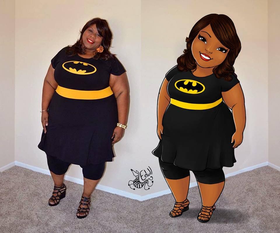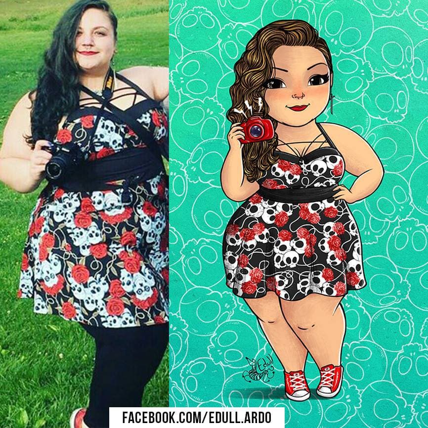 Кто сказал, что стандарт красоты — это 90−60−90? Как по нам, главное — любовь к себе и счастье в глазах, а всё остальное — навязанные штампы. Точно так же считает художник Эдуардо Сантос, который превращает фото бодипозитивных женщин в мультяшные рисунки. И получается очень красиво!