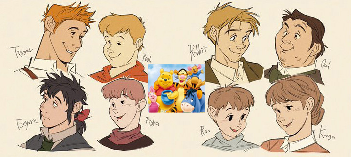 Герои «Винни Пуха» узнаются сразу — артер оставил уникальный стиль мультика, но превратил зверят в людей