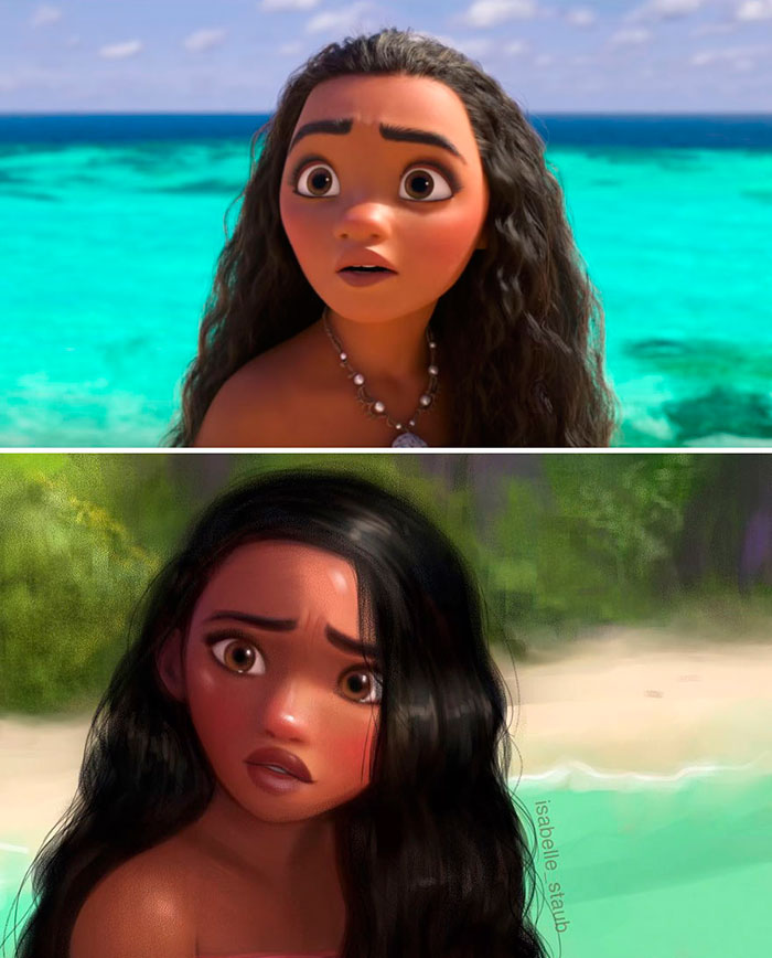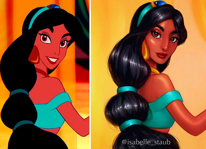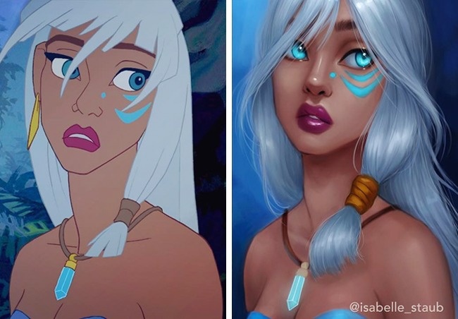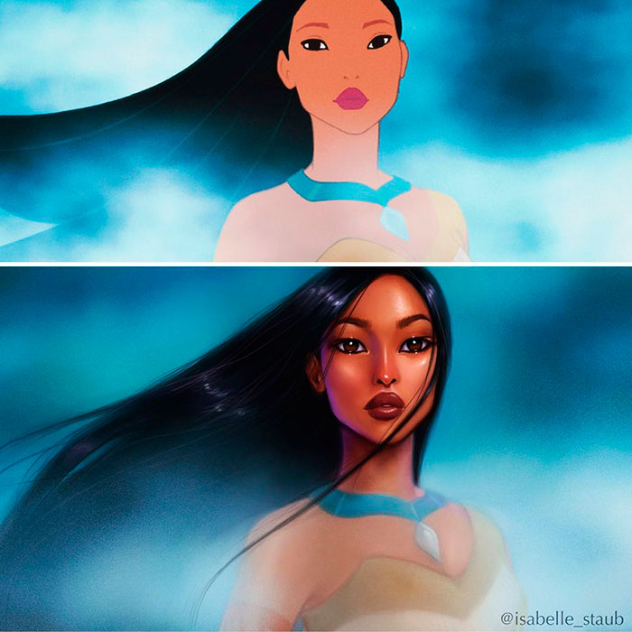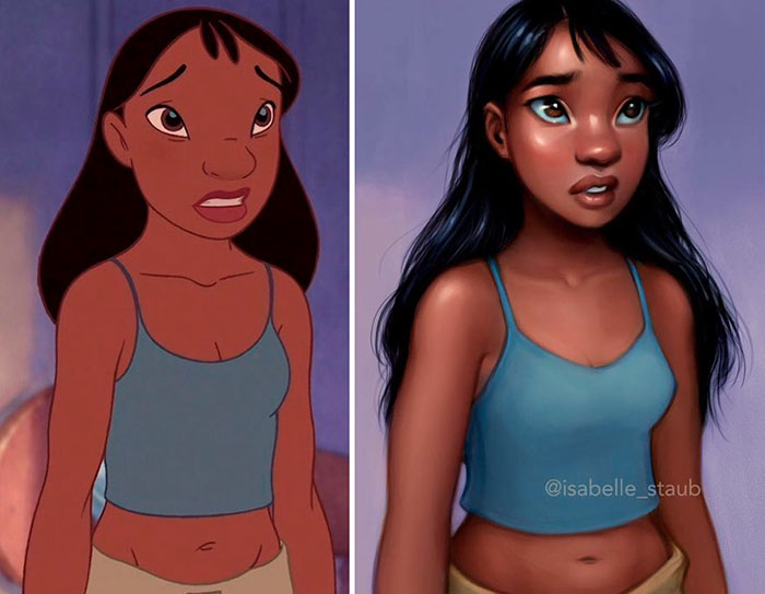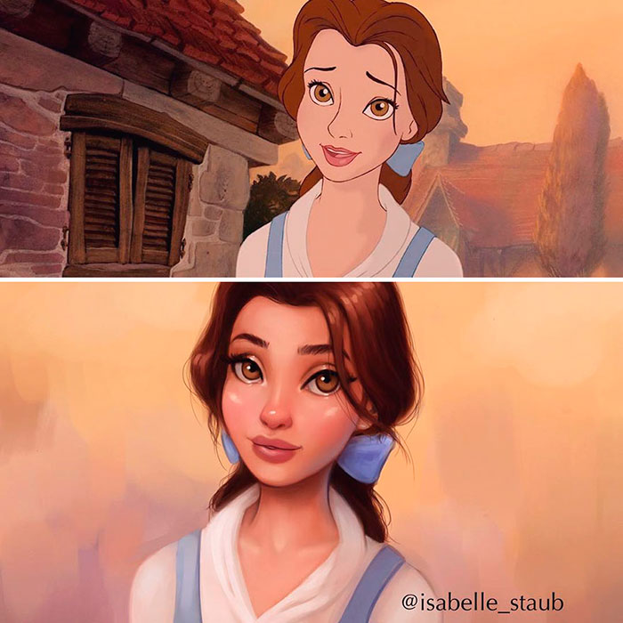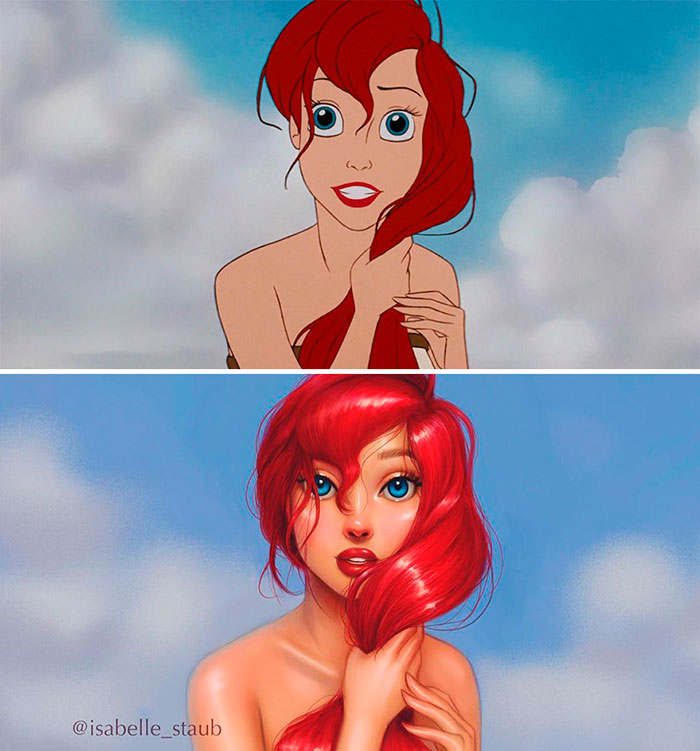 Американская художница Изабель Штауб увлекается тем, что перерисовывает персонажей мультфильмов в своем собственном стиле. В результате принцессы Disney и другие героини мультиков получаются супер реалистичными, яркими и стильными. Можете убедиться в этом сами.