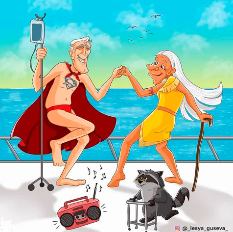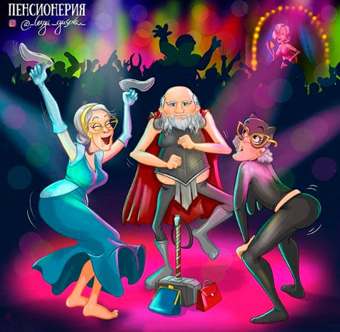 Как будут выглядеть знаменитые герои мультфильмов на пенсии? По мнению Гусевой, задор, в отличие от молодости, они совсем не растеряют. Смотрите сами, старички вовсю отжигают!