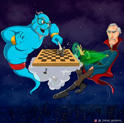 А Джин познакомился с доктором Стрэнджем и пытается выиграть у него в шахматы