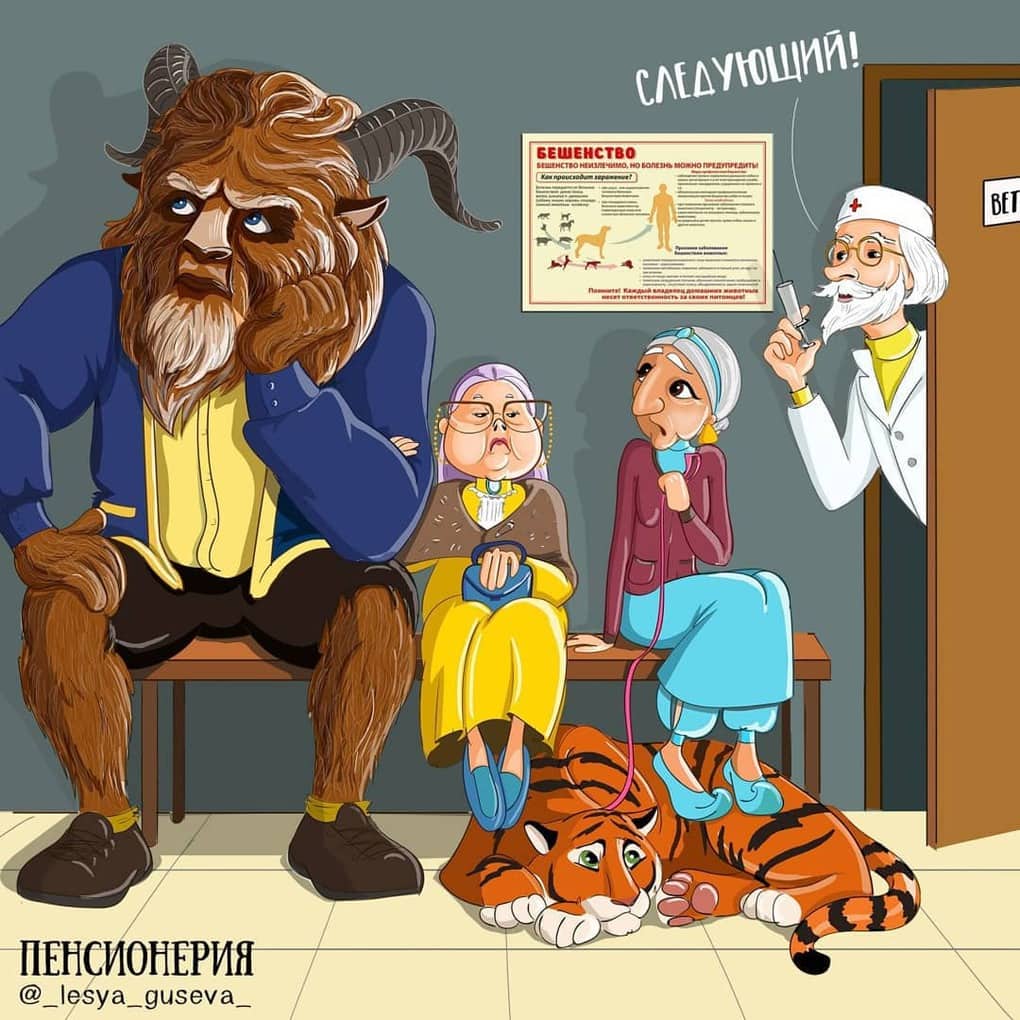 Красавица привела Чудовище к ветеринару (Айболит, это ты?) и оказалась в очереди рядом с Жасмин