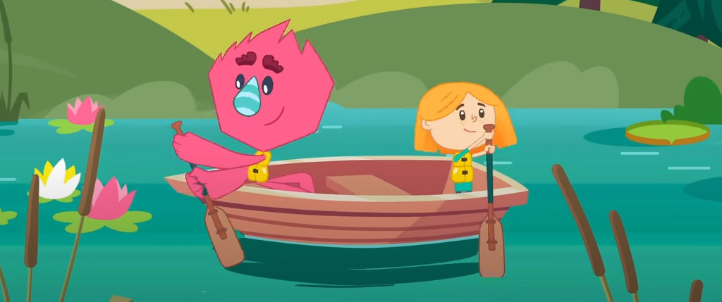Эф решает научиться грести. Он и Катя, находясь в одной лодке, выбирают противоположные направления для своих вёсел, вот и получается, что лодка стоит на месте. Может, местами поменяться? И даже этот вариант не решает проблему. Поэтому Катя и предлагает разобраться в том, как общаются под водой и над ней. Время изучать новое.