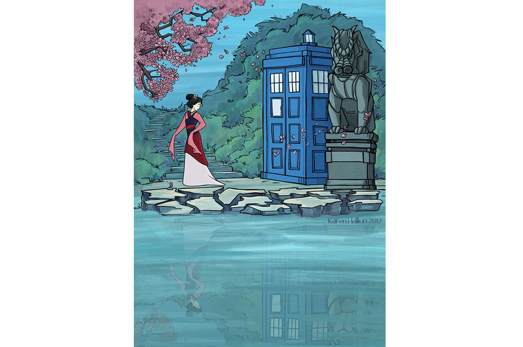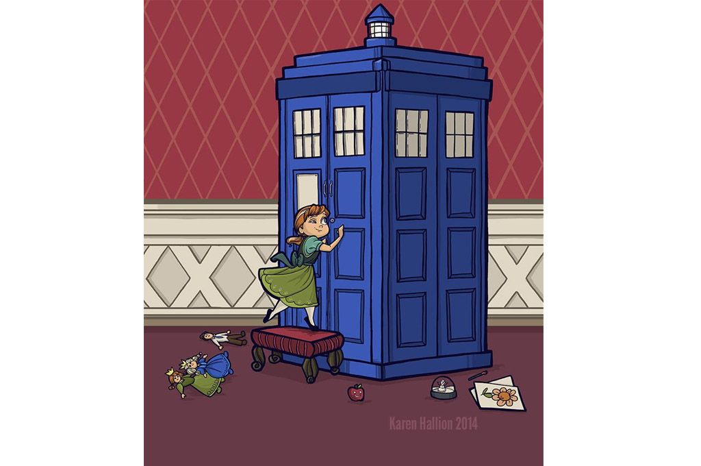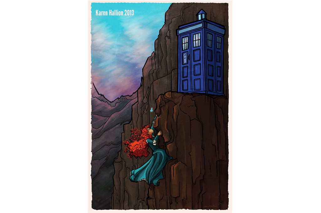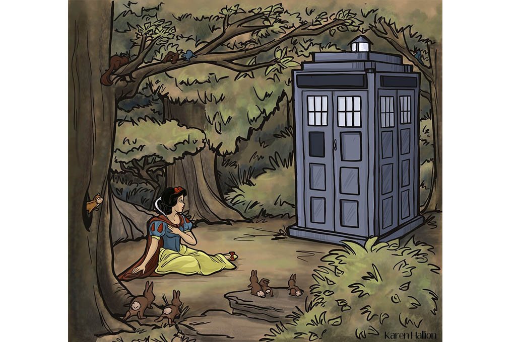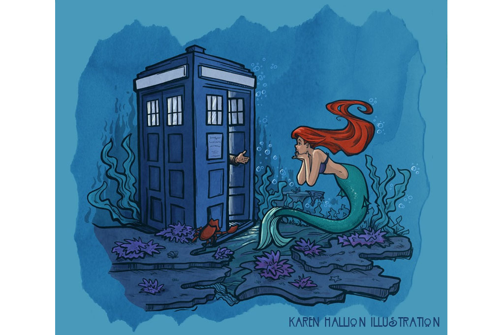 Давайте посмотрим, как художница Karen Hallion рисует героев Disney, познакомившихся с Повелителем Времени и синей будкой ТАРДИС.