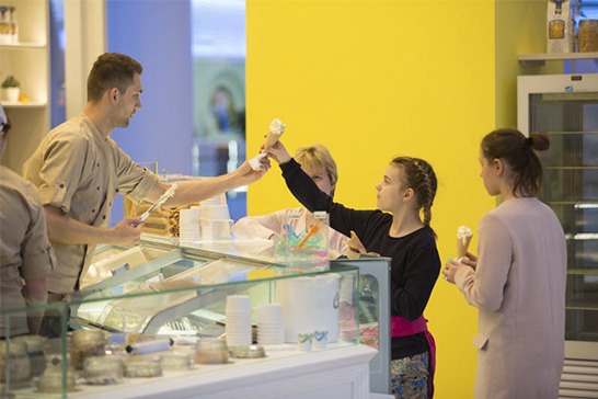 Перед уходом не забудьте зайти в кафе «GVIDO GELATO», чтобы поесть вкуснейшее итальянское мороженое. Здесь можно попробовать такие вкусы как имбирь с манго, ананас с лимоном, а еще — мороженое с розой и многое другое, но сделанное обязательно из натуральных ингредиентов. Настоящая вкуснятина!