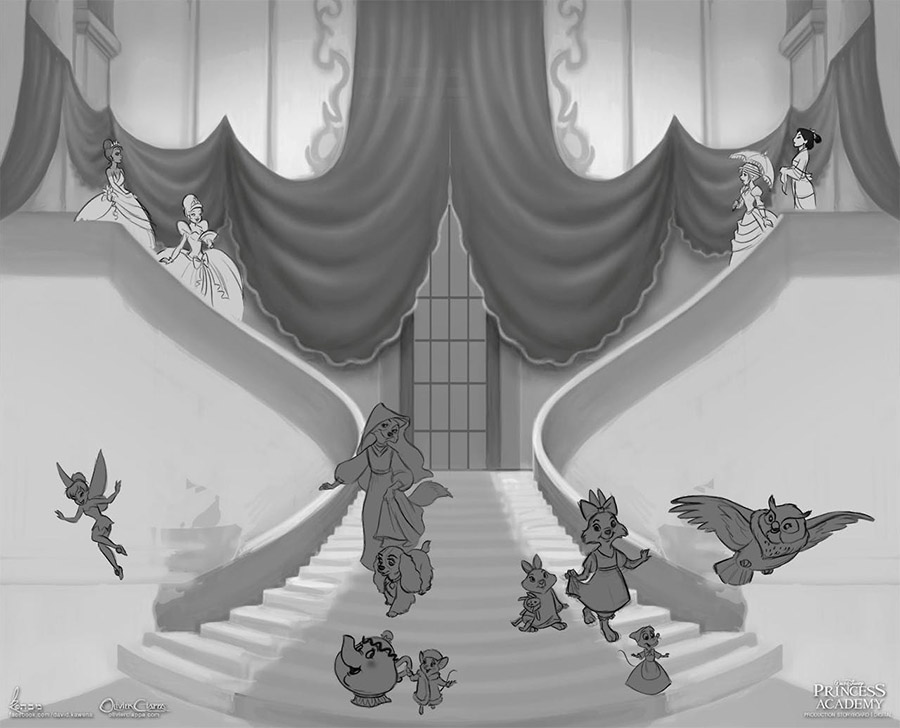Их зовут Дэвид Кауина (да, это псевдоним, взятый у парня Нани из «Лило и Стич») и Оливер Чаппа. Оливер написал сценарий и срежиссировал «Академию принцесс», а его товарищ долгое время собирал себе фанатскую базу на всех возможных платформах, создавая контент, основанный на мультфильмах студии Disney. Встретились два далеко не одиночества и воплотили нечто впечатляющее.