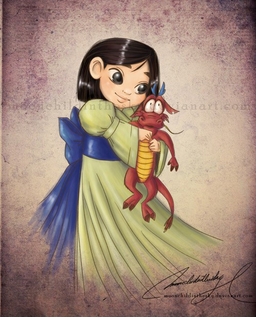 Мы уже показывали вам, как в детстве выглядели злодейки мультиков Disney. Теперь пришла очередь положительных персонажей. Художница с ником moonchildinthesky нарисовала героинь диснеевских мультфильмов маленькими девочками.