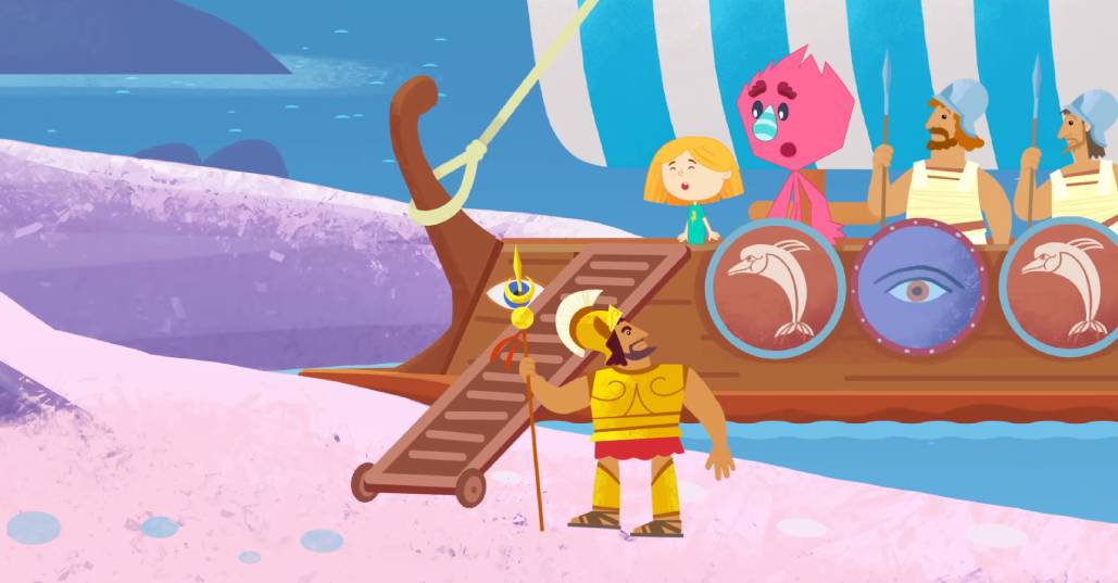 Далее приключение заворачивает на остров в Греции, который так и называется — Мыльный. Хорошо, что воины на галере не обратили внимание на путешественников во времени, а то мало ли… Кстати, в настоящем этот остров по-прежнему существует и носит имя Кимолос.