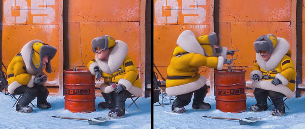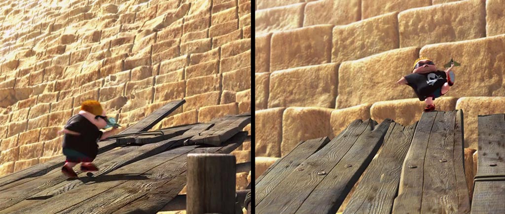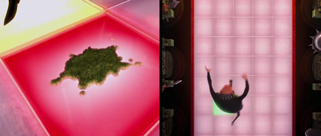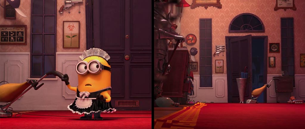 В «Гадком я» кто-то ответственно прибирает к рукам даже мусор! Исчезли ошметки яблока, которое раздавил отец Вектора (мы еще вернемся к этому моменту), пропали осколки бутылки, которую жевал Эль Мачо во флэшбеке, да даже сажа с лица Грю в момент падения на пол заметно сократила свои ряды. Или это волшебное анимационное самоочищение?