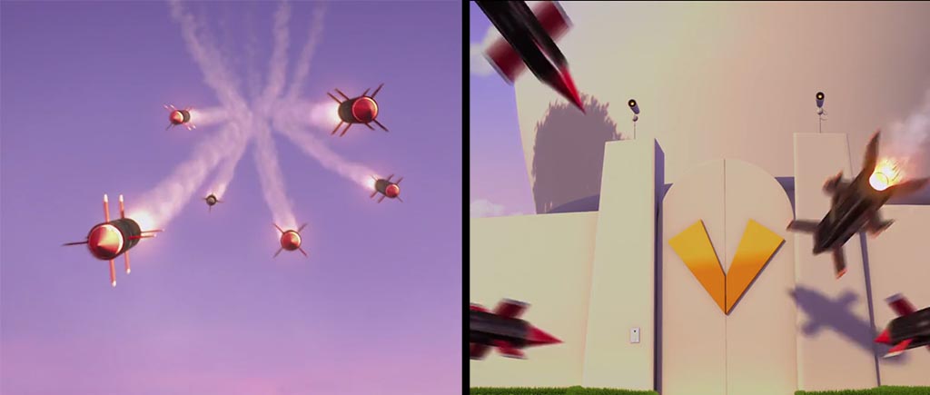 В этом моменте Вектор отправляет в Грю шесть ракет, а взрываются только четыре. Впрочем, какая разница, если цель все равно не получает особых повреждений? Некачественные у них ракеты, судя по всему.