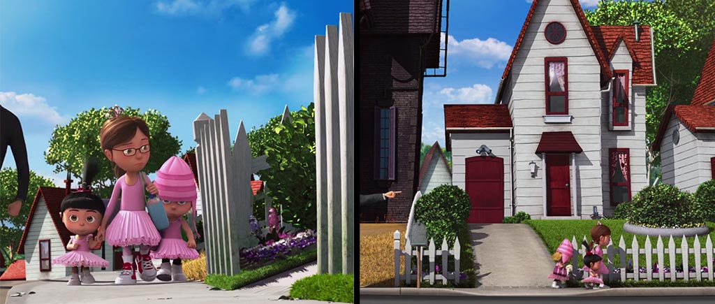 Персонажи в «Гадком я» тоже не лыком шиты. Девочки умеют перемещаться в пространстве — за время произнесения слова «серьезно?!» они перемахнули мимо калитки и оказались гораздо дальше от возмущающегося Грю.