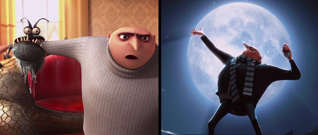И финальное: когда в первой серии Грю общается со своим неопознанным домашним любимцем, за окном явный и бесповоротный день. Несколькими минутами спустя герой красуется на фоне полной луны. По сюжету времени прошло всего ничего, но этот момент настолько эффектный, что никто об этом не задумывается.