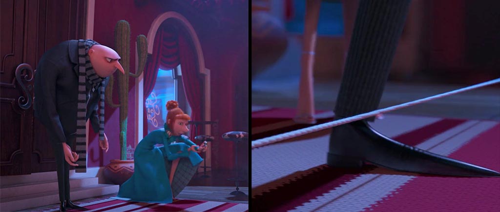 Ну и еще одна анимационная классика: веревка-ловушка, которая появилась только тогда, когда ее задел Грю. Родственница той, что сама слезла с Грюпунцель. Или вообще одна и та же веревка?