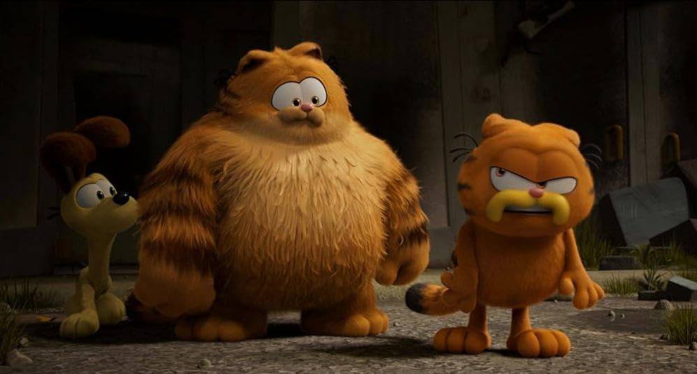Во-первых, о детстве Гарфилда, показанном уже в трейлерах. Там важно два момента — как котёнка-троглодита подобрал Джон, и как до этого его «ненадолго оставил» отец, ещё более толстый рыжий кот Вик — он же Виктор. Гарфилд на папу сильно обижен из-за вот этого «бросил» и в целом родителя не вспоминает.