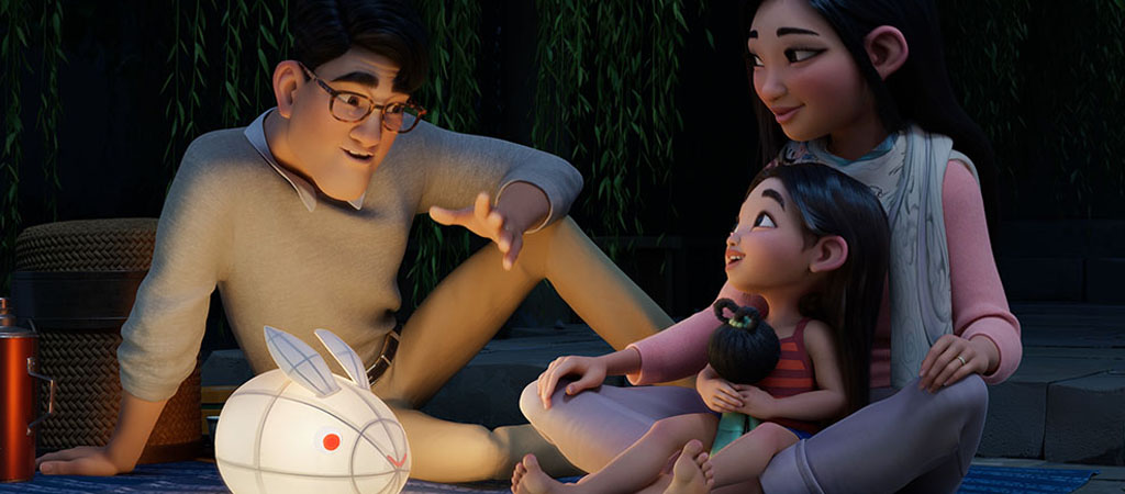 Ещё одна история о потере родителя. Только это не что-то из прошлого и поистёршегося во времени, как в случае «Вперёд». Девочка Фей-Фей детально помнит мать и не понимает отца, решившего перевернуть эту страницу жизни. Отправной точкой для путешествия на Луну становится семейное застолье, сопровождающееся гигантским стрессом. Здесь источником эмоциональных бед становится будущая мачеха и её сын, а заодно и остальные, уже знакомые родственники.