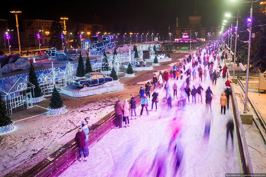 А вот и площадка, которая сместила предыдущий пункт с пьедестала про «самый большой каток в Европе с искусственным льдом». ВДНХ обогнал «Горького» на 2 тысячи квадратов и стал воистину самым гигантским катком. Организаторы залили льдом немаленький кусок ВДНХ, начиная прямо с дорожек Центрального павильона и заканчивая у павильона «Земледелие».