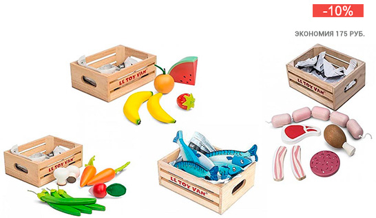 Когда еда всегда свежая? Когда она игрушечная! В магазине «Мульт» представлены самые разнообразные наборы еды. Есть овощи в ящике. Сезон закончился, а хочется фруктов? И такой ящик найдётся.