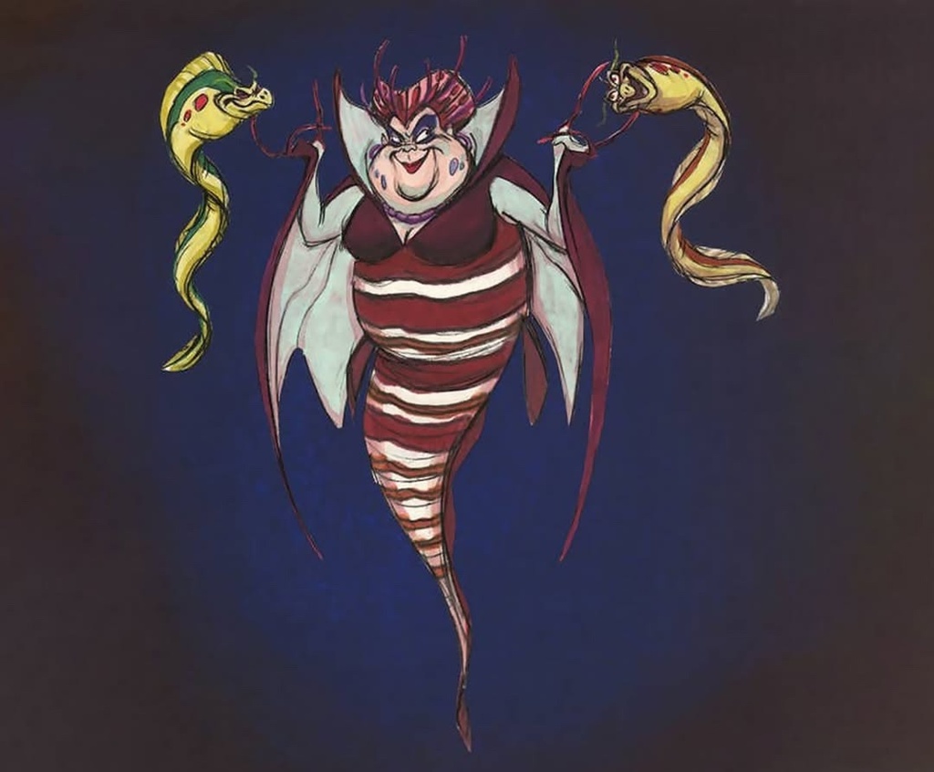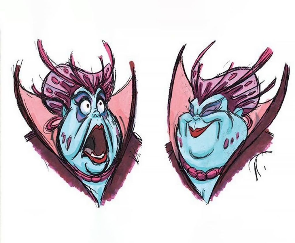 Лето — прекрасное время года. Солнце, пляж, волны, морские обитатели… Это настроение отлично передаёт классика студии Disney — мультфильм «Русалочка». И помимо главной героини Ариэль, её верных друзей и прекрасного принца Эрика, с лентой неизменно ассоциируется ещё один персонаж — коварная злодейка, морская ведьма Урсула. Харизматичная и жуткая, она запоминается с первого своего появления на экране. Но мало кто знает, какой Урсула была на ранних концепт-артах художников. Предлагаем ознакомиться с этими набросками вместе с Тлум.Ру.