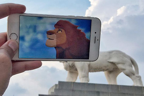 А точнее, он ходит с телефоном, в котором есть куча кадров из известных мультфильмов и фильмов. И когда он видит место, куда отлично бы вписался этот персонаж, он помещает телефон в нужное место и делает забавное фото, «оживляя» памятники и улицы Израиля.