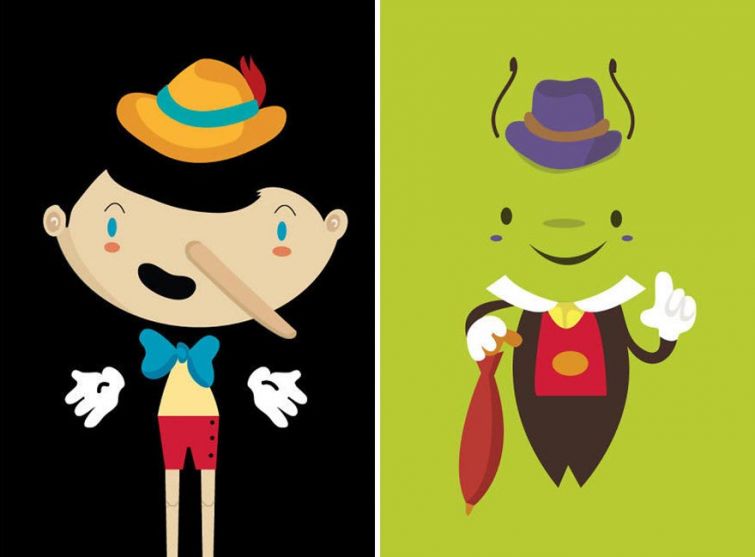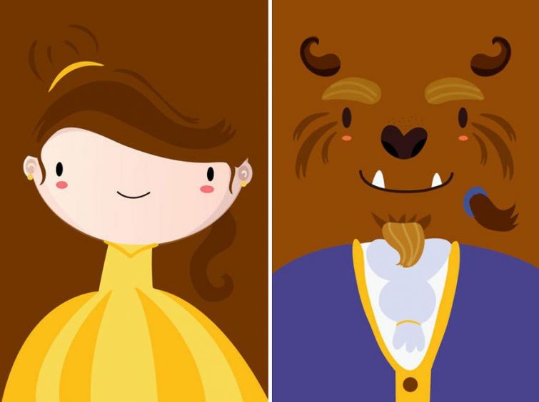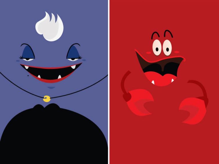 Например, как эти упрощенные персонажи сказок и диснеевских мультиков. Особенно нам понравились Флаундер и Себастьян из «Русалочки» — их хоть сейчас на майку.
