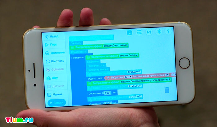 После игры Миша решает запрограммировать робота: чтобы тот ездил между коробочками и, заметив препятствие, остановился и начал издавать звуки. Создается новая программа опять же в приложении, с помощью логического следования «если…, то… «. Количество новых команд ограничивается лишь детской фантазией!